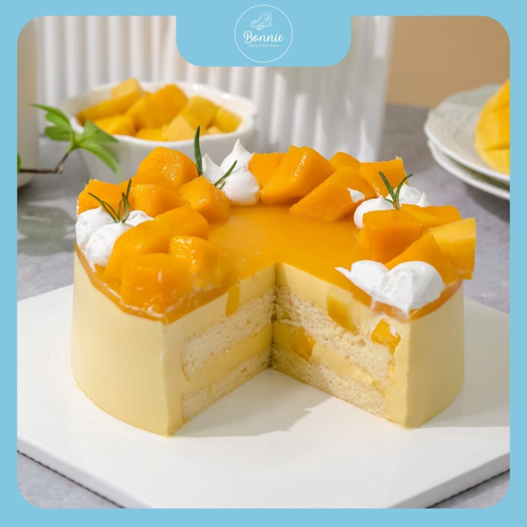 • Hương vị tươi mát: Lớp mousse mịn màng hòa quyện cùng xoài tươi ngọt thanh, tan chảy trong từng miếng.
