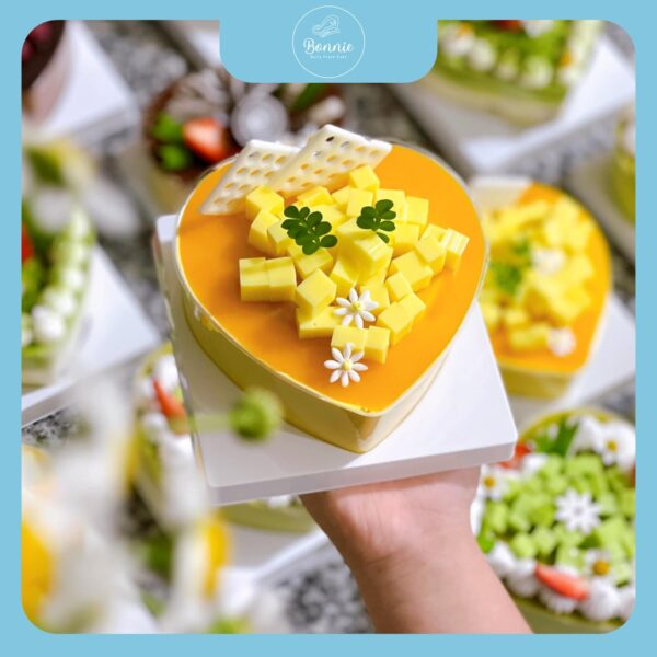 • Hương vị tươi mát: Lớp mousse mịn màng hòa quyện cùng xoài tươi ngọt thanh, tan chảy trong từng miếng.